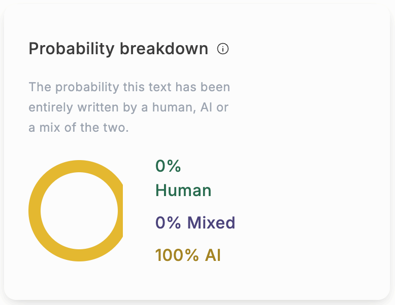 Though by no means conclusive, GPTZero gave the post a 100% probability of being AI-generated.
