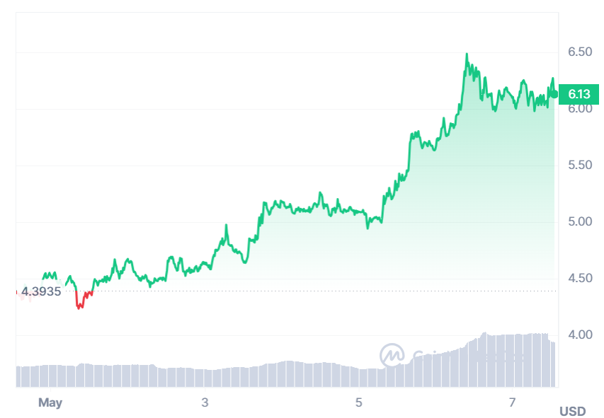 WLD prices over the past seven days. (Source: CoinMarketCap)