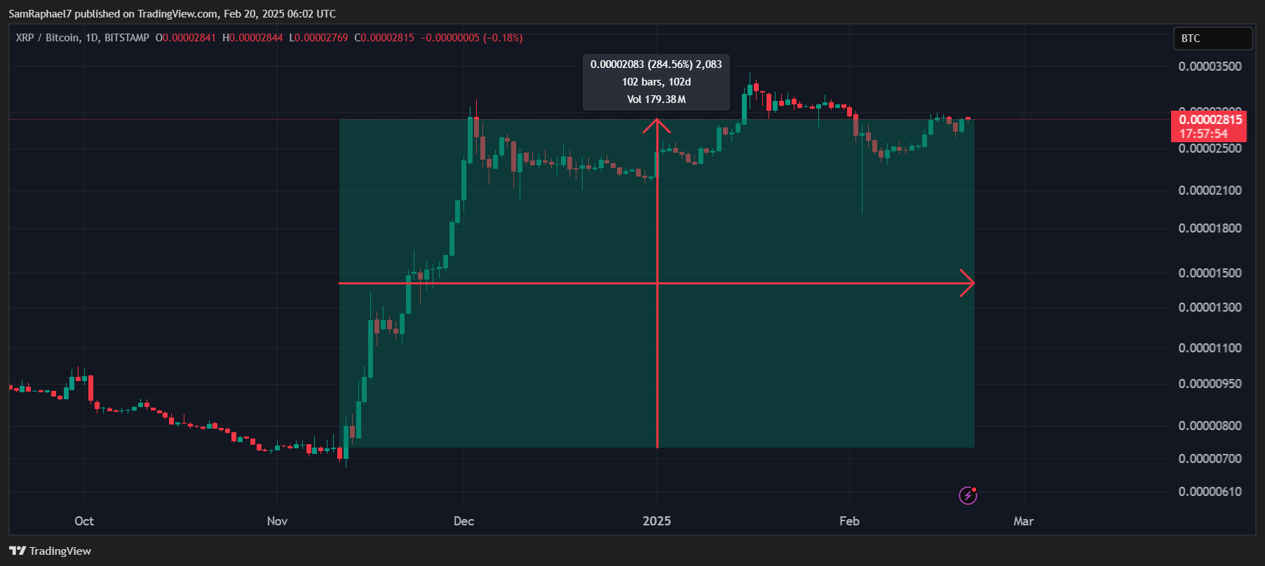 XRP up 284% Against Bitcoin Despite Current Downturn
